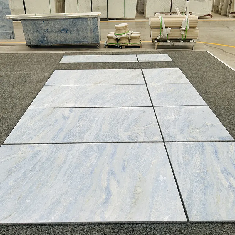 As telhas de parede de sotaque de mármore de cristal azul não são apenas esteticamente agradáveis, mas também são convenientes de utilizar. É um mármore natural, não bonito, mas durável e funcional nisso. Você pode cortá -lo em diferentes tamanhos de ladrilhos, dependendo de diferentes aplicações, incluindo pisos, paredes e bancadas. Mas onde realmente se destaca está em uso vertical, como instalação de parede de sotaque de telha de mármore e revestimento de parede de mármore interior.