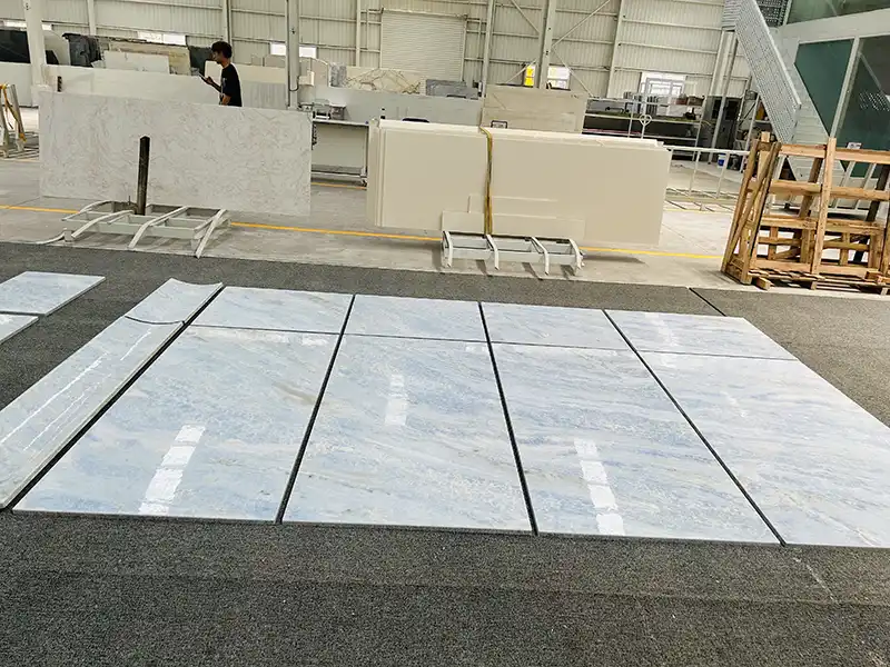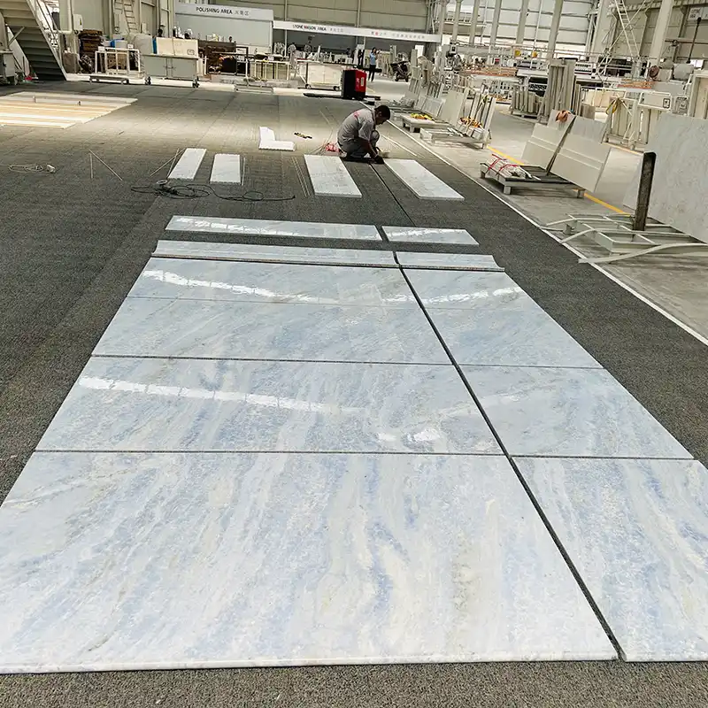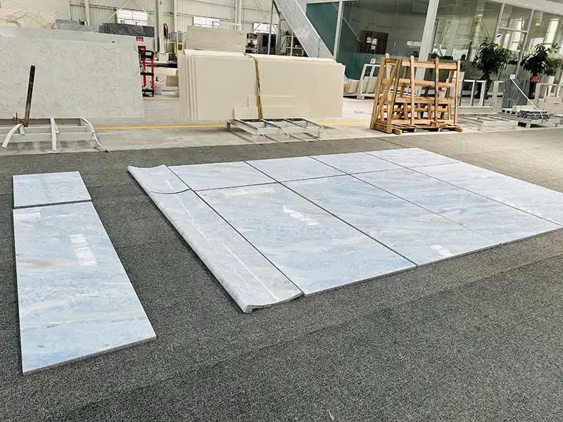 Estamos usando o calcite azul extra mármore na Wow Stone há muito tempo. Sabemos como tirar o máximo proveito desse material. Fazemos tudo isso internamente, desde a obtenção do material e cortando-o até politá-lo e embalá-lo. Isso é um melhor controle de qualidade, opções mais personalizadas e uma experiência mais pessoal.