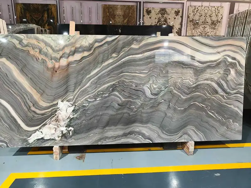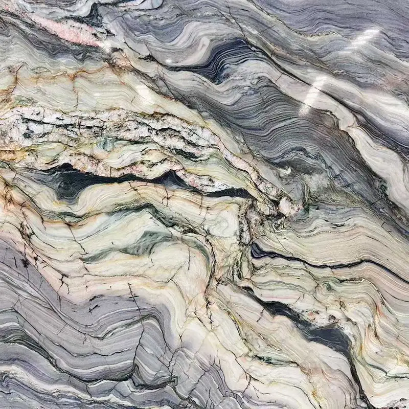 Os designers adoram materiais que lhes dão espaço para explorar. Blue Fusion Quartzite faz exatamente isso. Suas cores são ousadas, mas não esmagadoras. Os padrões são naturais, mas não caóticos. E se você está projetando um espaço que se inclina moderno ou algo mais clássico, essa pedra joga bem com os outros.