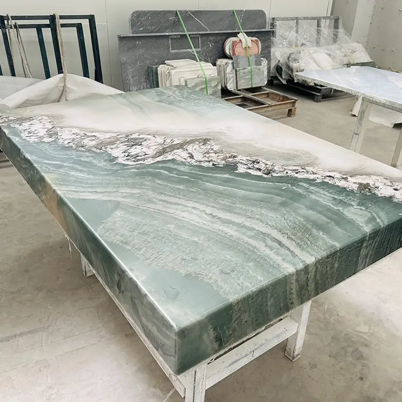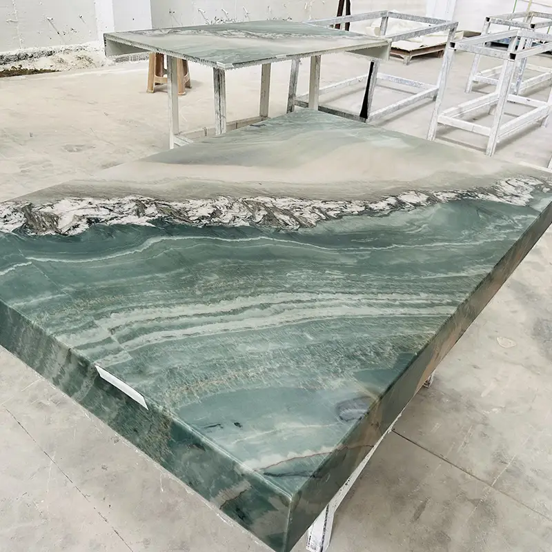 O maestro não se limita a bancadas. As ladrilhos de quartzito verde podem ser empregados para unir uma sala, em paredes, pisos ou sotaques. Você quer uma bancada de cozinha de quartzito que se estende ao backsplash? Essa é uma opção. Precisa de quartzito verde claro para uma aparência mais brilhante e arejada? Sem problema. Esta pedra é adaptável o suficiente para satisfazer uma ampla gama de necessidades de design, desde tops de quartzito para banheiros a bancadas de quartzito verde completo para cozinhas de plano aberto.