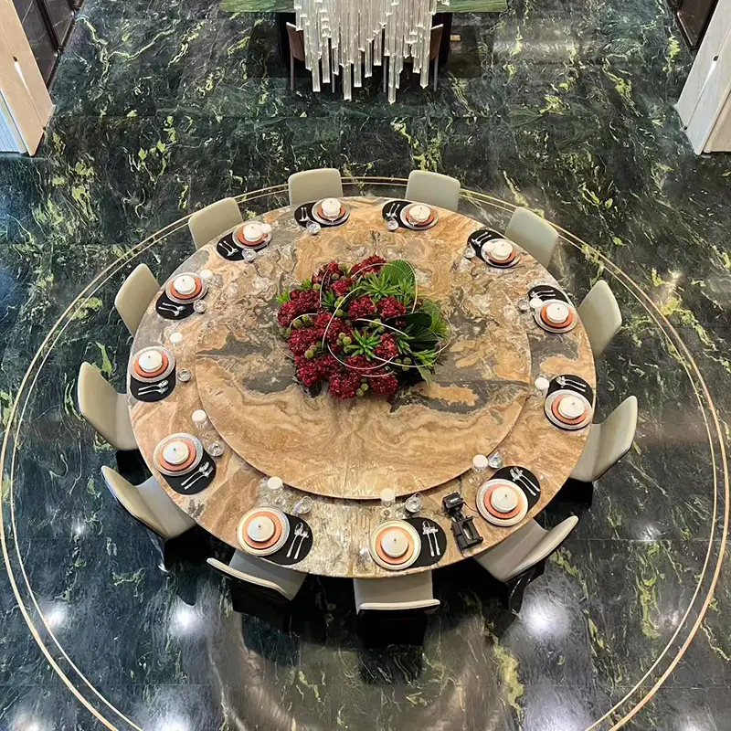 A aparência e a atmosfera do seu espaço para jantar mudarão imediatamente quando você usar a laje de granito Speranza como uma mesa de jantar em granito verde. Sua cor verde irradia uma atmosfera vibrante e acolhedora, ideal para reuniões noturnas com amigos ou entes queridos. Não apenas bonito, o granito também é muito difícil, então você não precisará mais se preocupar com arranhões e dings do uso regular.
