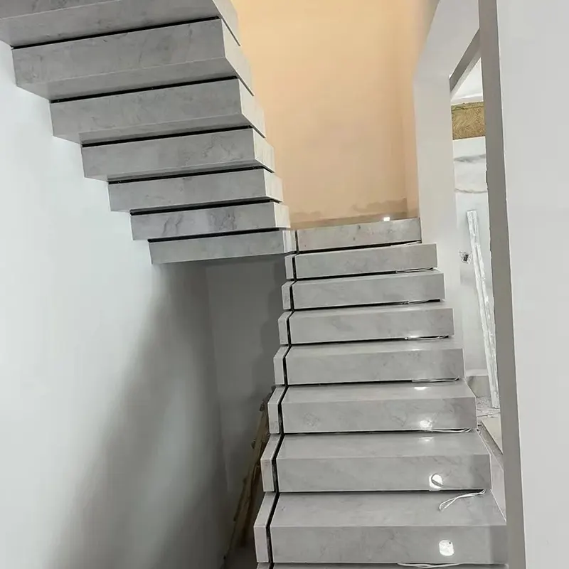 O mármore branco de Yabo tem um desempenho especialmente bom em designs de escadas. Sua qualidade consistente e construção forte o tornam ideal para escadas internas, aumentando todo o fluxo do espaço. Em projetos de interiores de mármore branco, essas escadas ocorrem no estágio frontal.